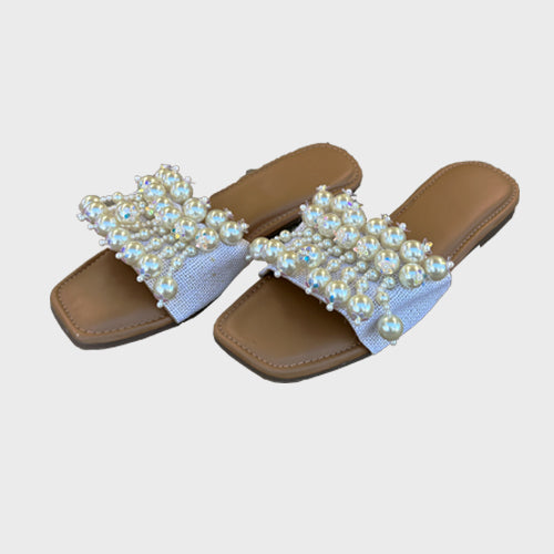 Step into timeless elegance with our Pearl Slider, a perfect blend of traditional charm and modern comfort. Handcrafted with precision, this Slider features a soft upper adorned with delicate pearl embellishments, giving it a luxurious yet subtle sparkle.