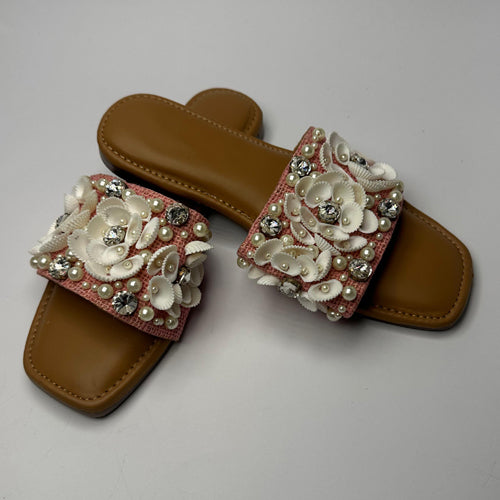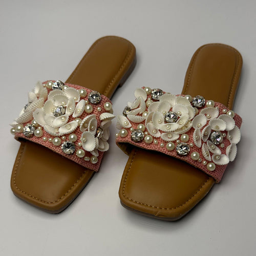 hand crafted with sea shell, big crystal stones, and pearls. These sliders are good for any occasions, and suitable for casual as everyday wear.