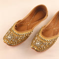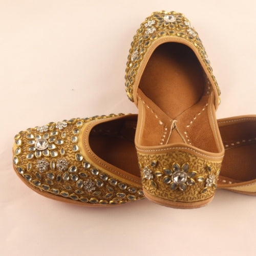 These Pakistani khussas, or Indian Punjabi Jutties have pink kundans all around, with hint of zircons, and hand embroidery with dabka work