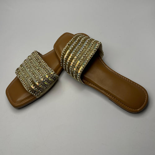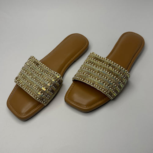 This slider is beautifully hand crafted with golden beads, white pearls, white sequences who they reflect white, and gold shades to gather at once. These all attributes bring an opportunity to these sliders to be worn not everyday only, but any eventful occasion.