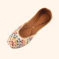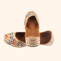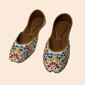 These Australia khussa or Indian Punjabi jutties are very trendy, because they are suitable for your every attire. Rainbow tears with silver dabka work on these sandals are looking greatly more attractive.